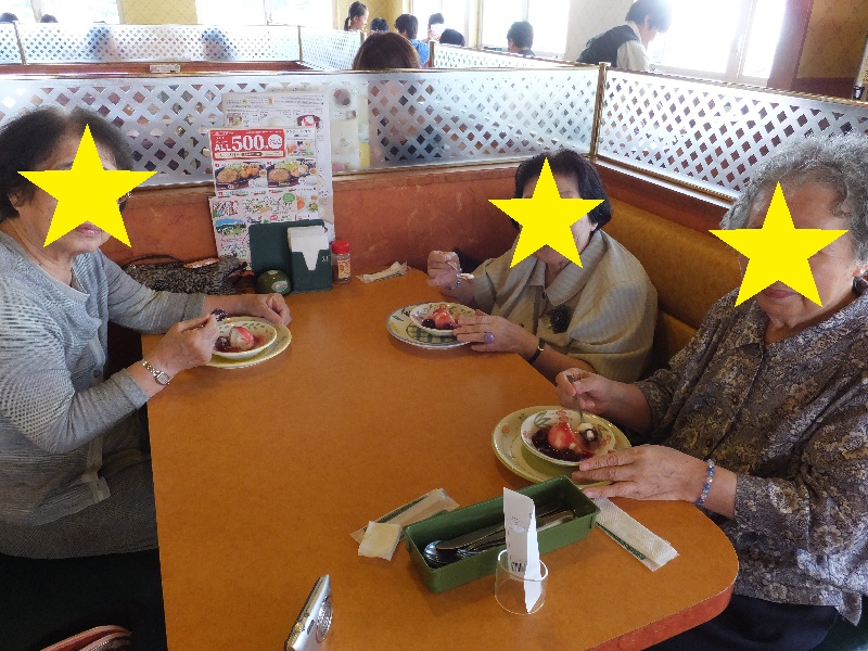 これは先日『サイゼリアに行こう!』というイベントで 希望者の中から抽選で選ばれた3名の利用者様が 勝利の余韻に浸っている所です