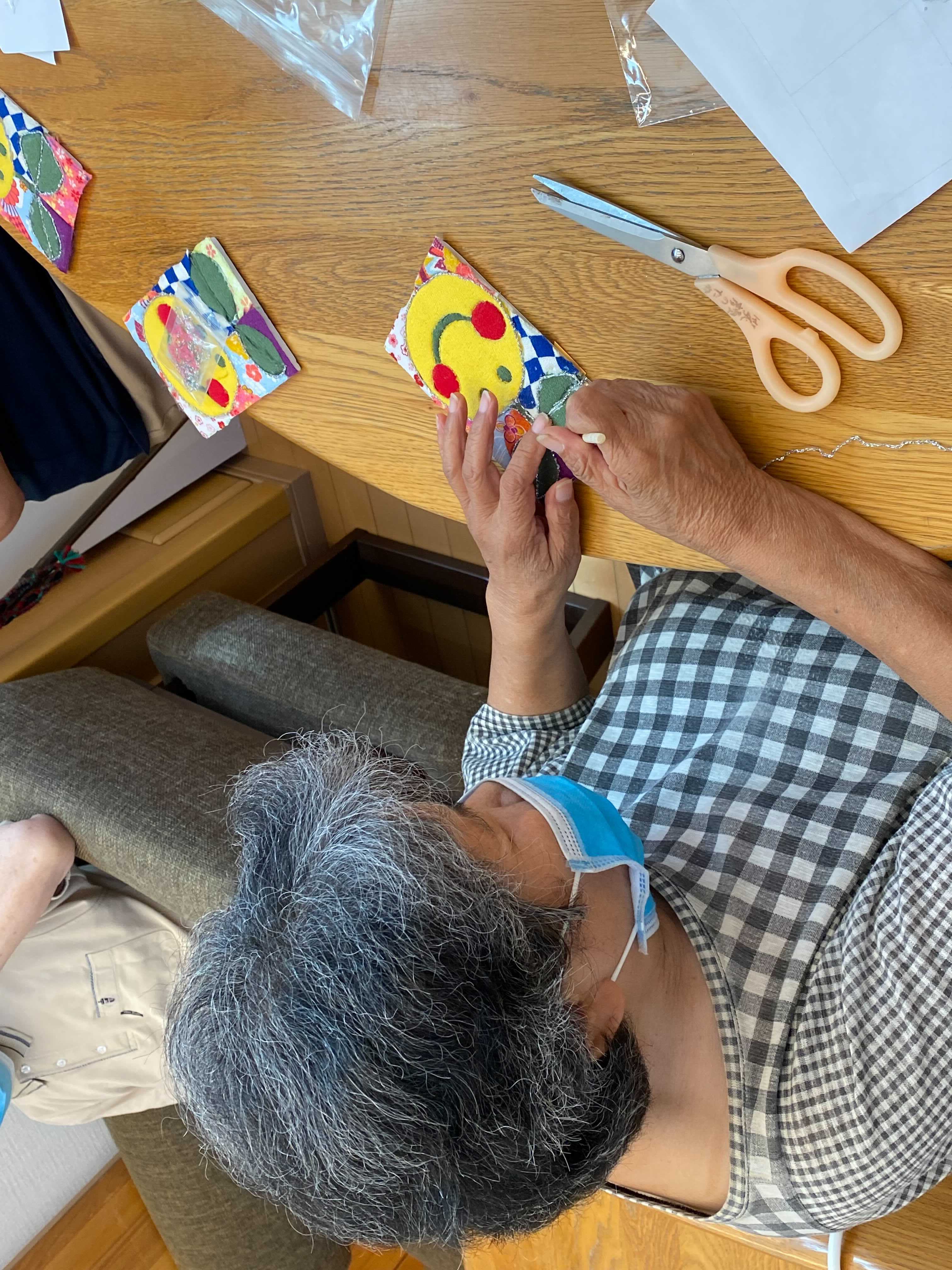 お客様、大変集中して木目込まれています。